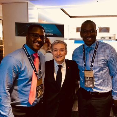 From left to right, SsahiPath President and Chief Technology Officer Dr. Erick Tidiane, The Canadian Minister of International Trade, M. Francois Phillip Champagne, and SsahiPath Co-Founder and Chief Executive Officer Jacques NdoutouMve photographed after a breakfast meeting in Montreal at the 2018 International.